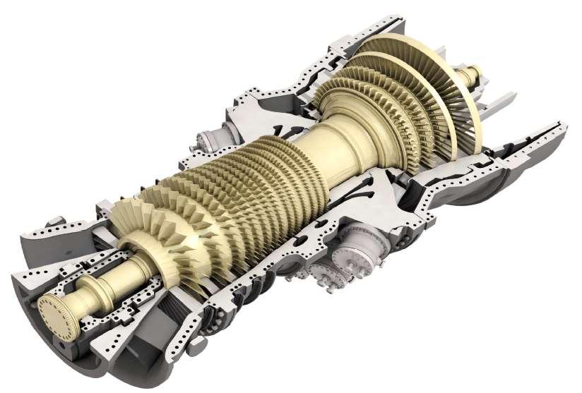 - 3연소가스로 발전기와 연결된 터빈을 회전시킵니다.
