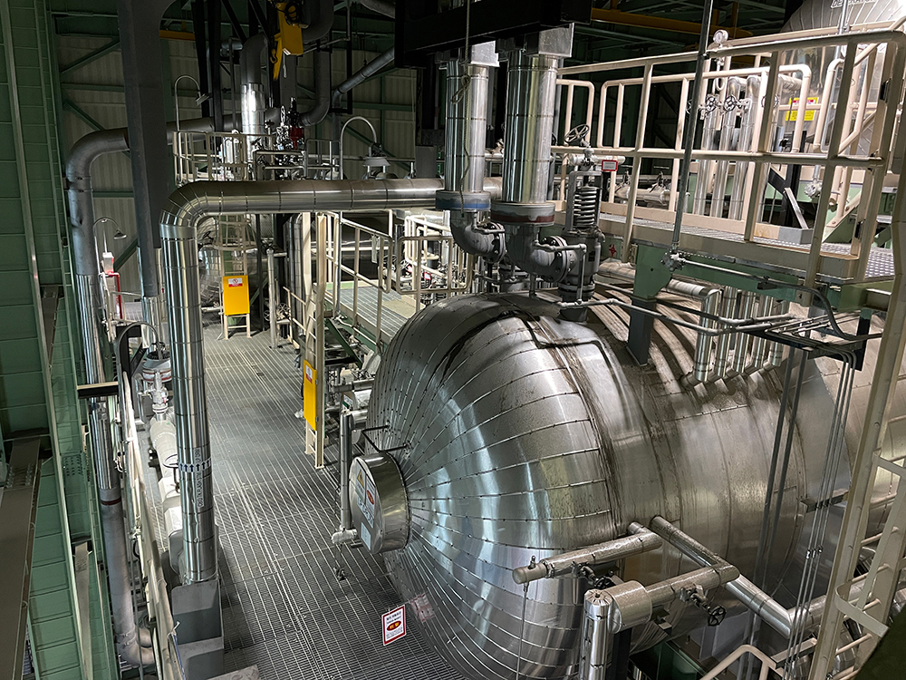 지역난방 공급에 필요한 열을 생산하는 설비로서 연소장치, 통풍장치, 급수 · 연료공급장치, 자동제어장치, 전기집진기, 연돌 등으로 구성되어 있고 보일러에서 생산된 증기는 열교환기를 거치면서 지역난방 온수를 가온하게 됩니다.